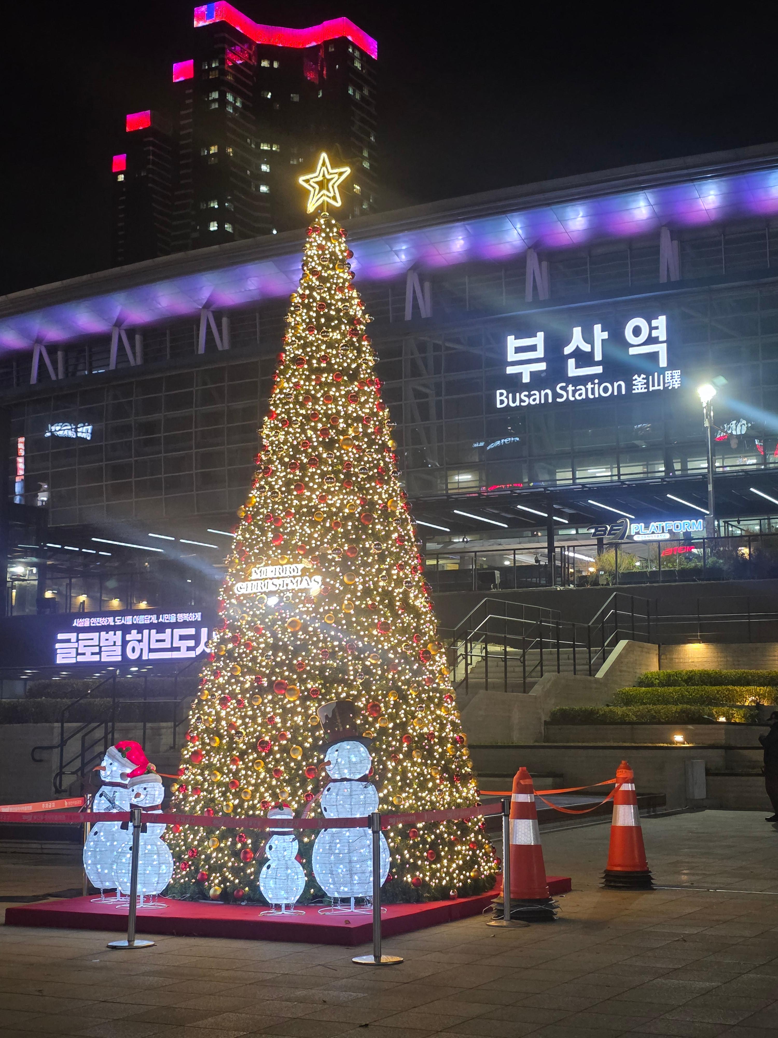 부산역 앞에 멋지고 아름답게 장식해 놓은 트리앞에서 사진도 찍고~